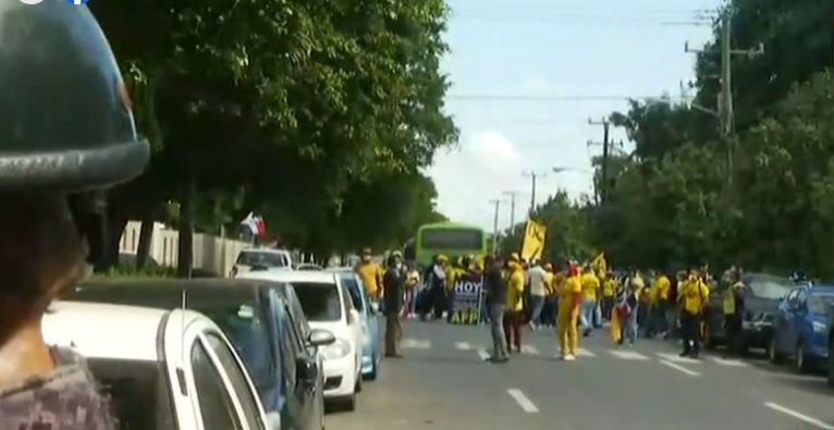 SANTO DOMINGO.- Manifestantes que exigen 30% de los recursos que retienen las Aseguradoras de Fondos de Pensiones (AFP) se enfrentaron a la Policía este jueves frente al Congreso
