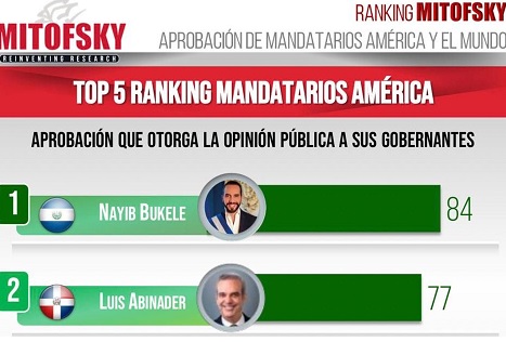 El mandatario dominicano Luis Abinader es el segundo presidente mejor valorado de América, según el ranking Mitofsky presentado este lunes. En primer lugar se encuentra el presidente de El Salvador, Nayib Bukele.