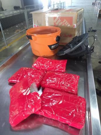 El informe indica que en ese momento y en presencia de un fiscal adjunto, se procedió a requisar en el equipaje, ocupando en su interior un bulto de color negro con cinco paquetes presumiblemente cocaína o heroína, con un peso preliminar de 6.20 kilogramos.
